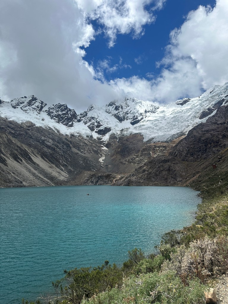The hike was worth it though, we were the only one on the trail so we had the lake to ourselves when we got to the top. We also had views of the Huascaran mountain, the fourth highest peak in South America at 22,205′ (only 632′ behind Aconcagua, the tallest in South America). The hike down was a breeze.
